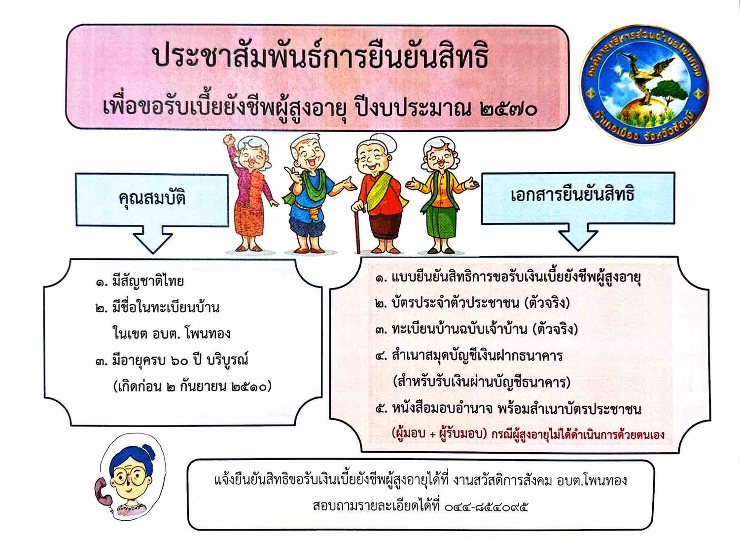 ประชาสัมพันธ์การยืนยันสิทธิเพื่อขอรับเบี้ยยังชีพผู้สูงอายุ ประจำปีงบประมาณ 2570 |