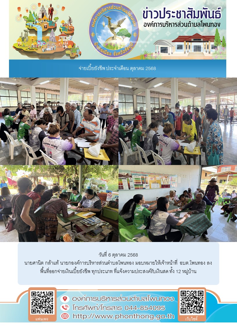 จ่ายเบี้ยยังชีพ ประจำเดือน ตุลาคม 2568