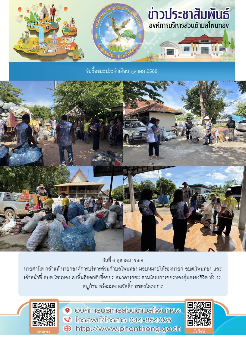 รับซื้อขยะประจำเดือน ตุลาคม 2568