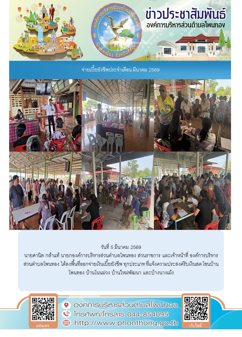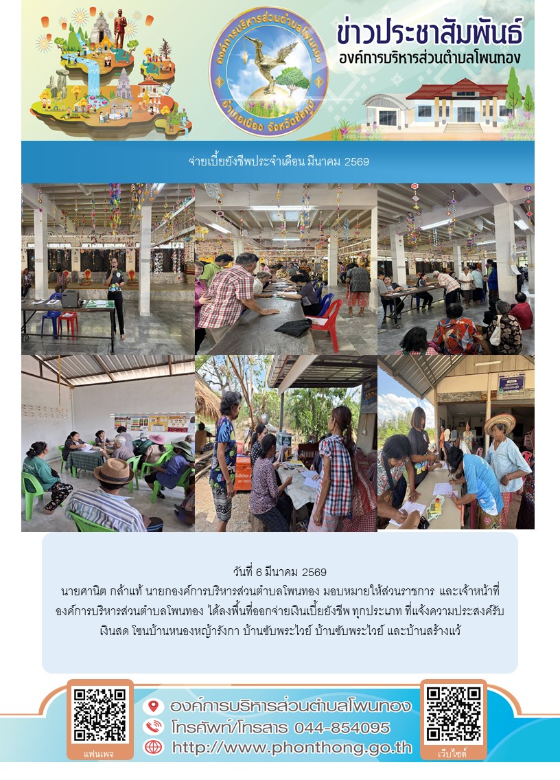 จ่ายเบี้ยยังชีพประจำเดือน มีนาคม 2569