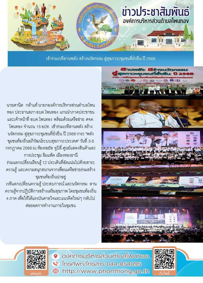 องค์การบริหารส่วนตำบลโพนทอง อำเภอเมือง จังหวัดชัยภูมิ : www.phonthong.go.th