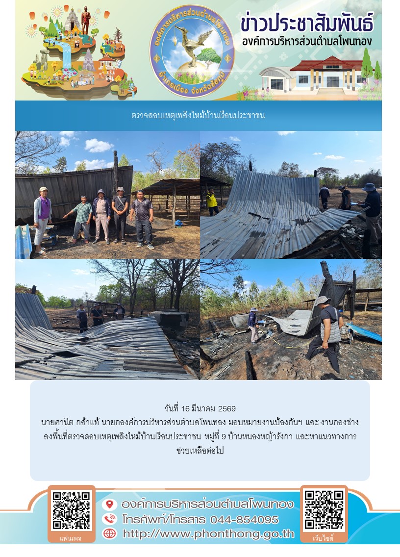 ตรวจสอบเหตุเพลิงไหม้บ้านเรือนประชาชน
