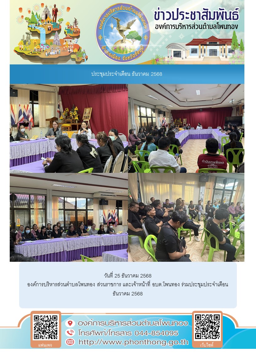 วันที่ 25 ธันวาคม 2568 องค์การบริหารส่วนตำบลโพนทอง ส่วนราชการ และเจ้าหน้าที่ อบต.โพนทอง ร่วมประชุมประจำเดือน ธันวาคม 2568