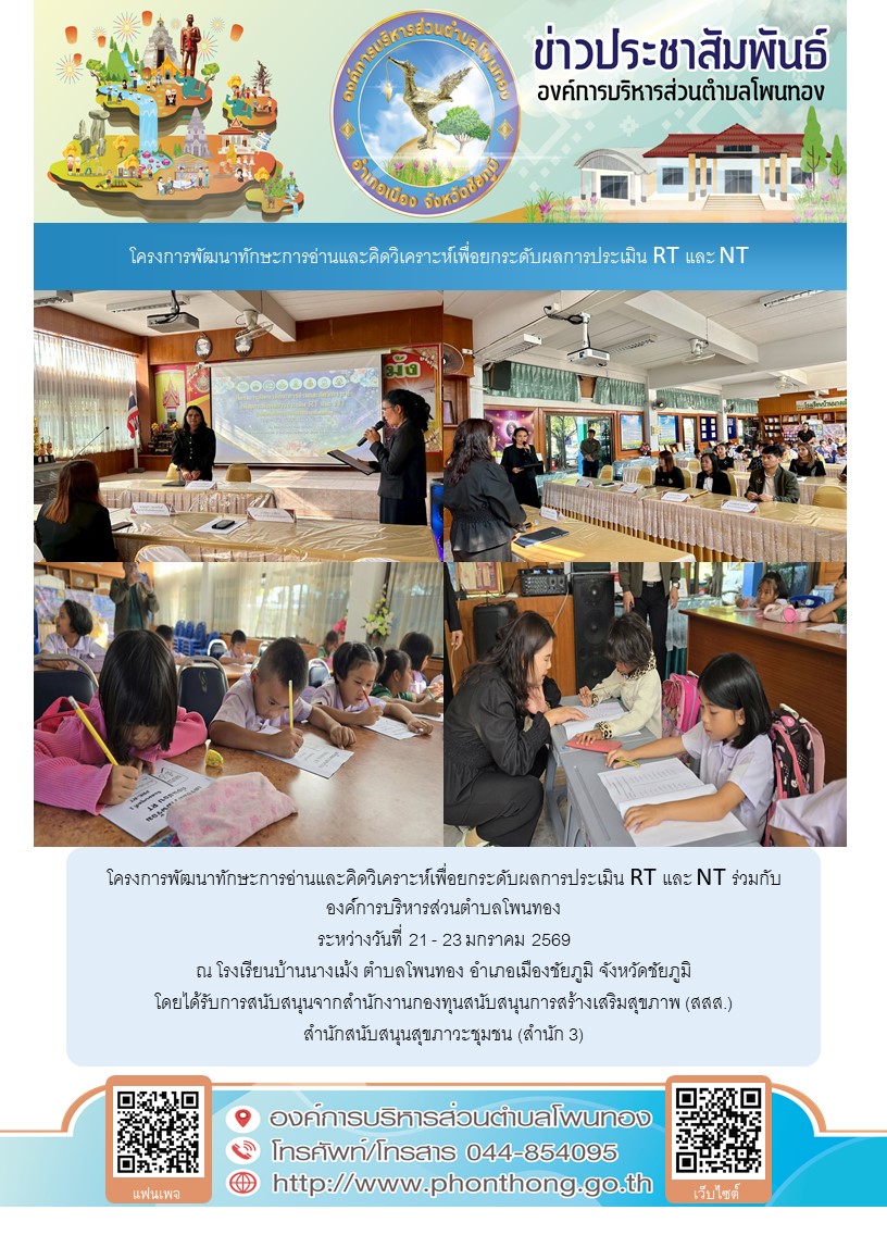 โครงการพัฒนาทักษะการอ่านและคิดวิเคราะห์เพื่อยกระดับผลการประเมิน RT และ NT ร่วมกับองค์การบริหารส่วนตำบลโพนทอง