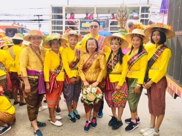 คณะนางรำ และประชาชนของตำบลโพนทองเข้าร่วมขบวน